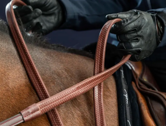1/2" Rubber Reins with 7 Stops and Braided Finish | Dy'on NEW ENGLISH Collection