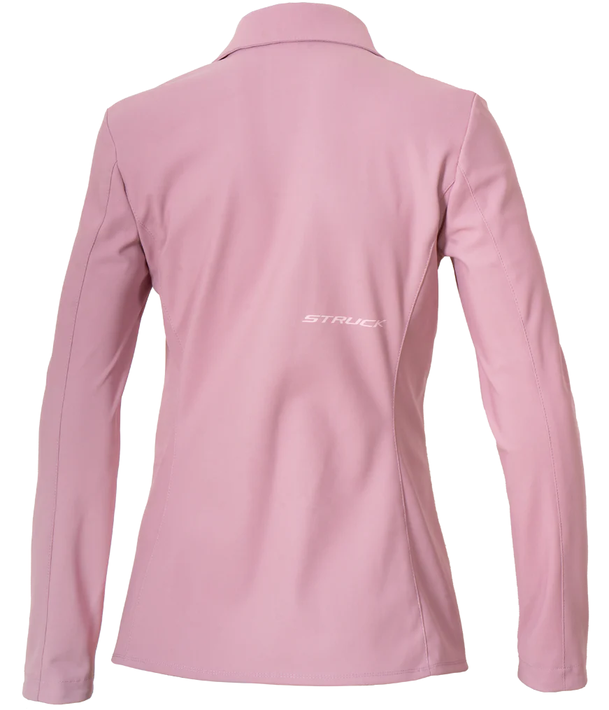 Designed to fit like a modern competition jacket. Stretch fabric sits close to the body, hugging the waist and softly hitting the hips.