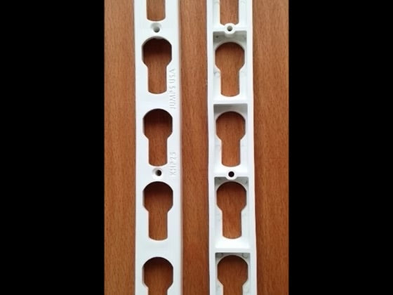 Ce rail à trous de serrure est fabriqué en PA blanc très résistant, compatible avec les cuvettes de saut sans goupilles de 24 mm à 16 mm, ce qui le rend universel. Notre polymère peut être utilisé entre -25 et 60 °C (-13 et 140 °F).